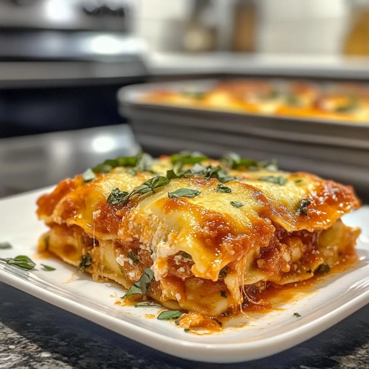 6. Repeat layering with the remaining ravioli, sauce, and cheeses, topping with mozzarella and Parmesan. This creates a delightful multi-layered experience.