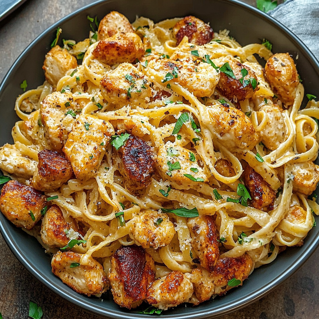 Spicy Cajun Chicken Bites with Creamy Garlic Alfredo Twists