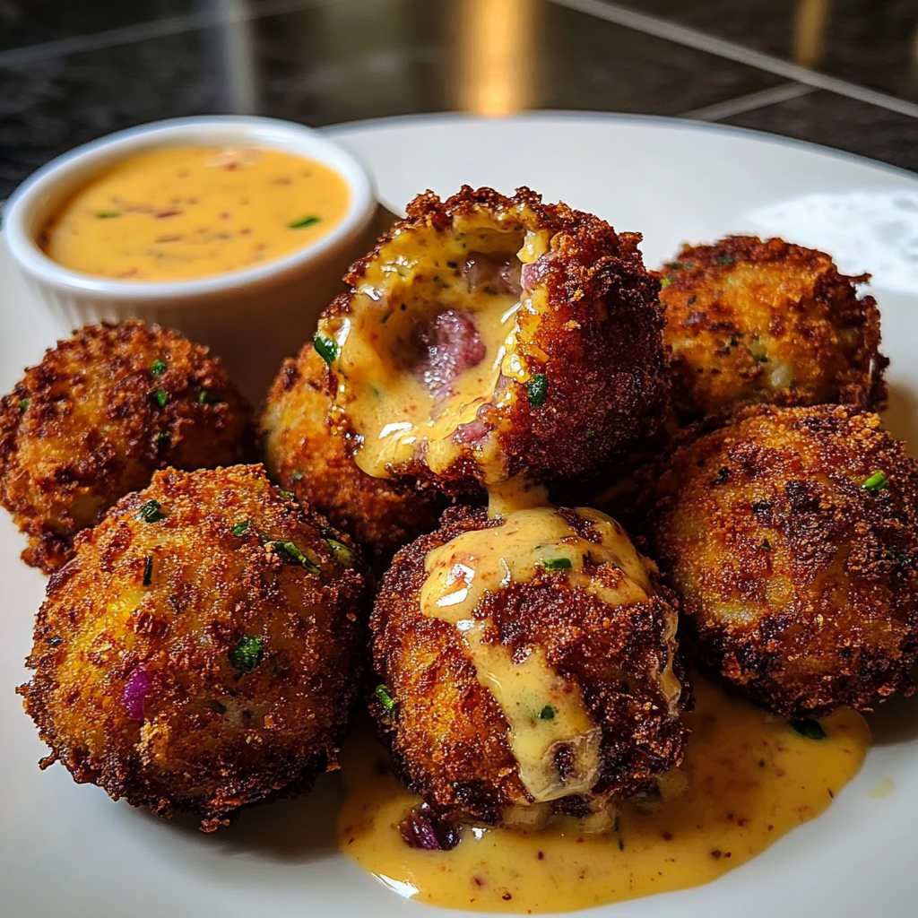 Crispy Reuben Balls with Spicy Thousand Island Sauce