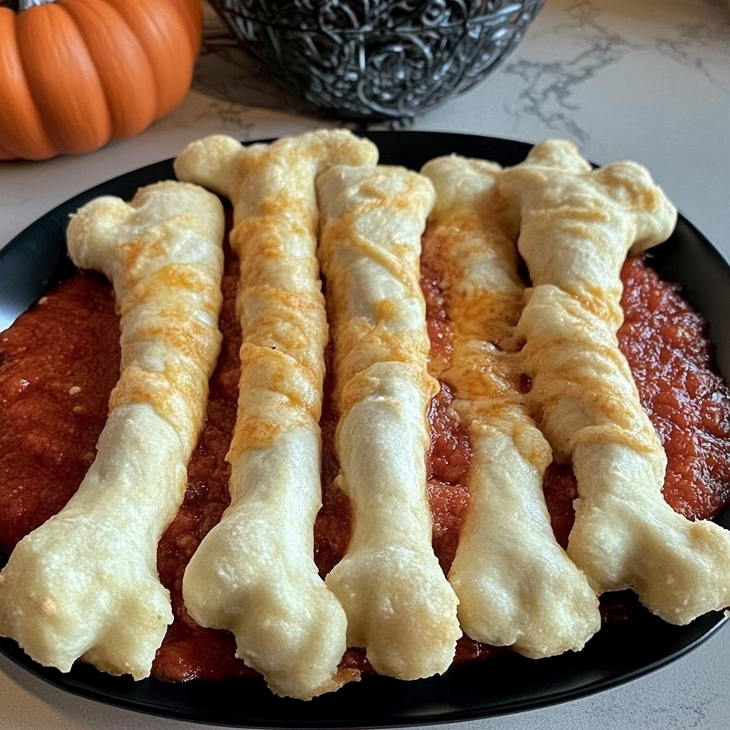 Spooky Cheesy Halloween Breadstick Bones with Marinara