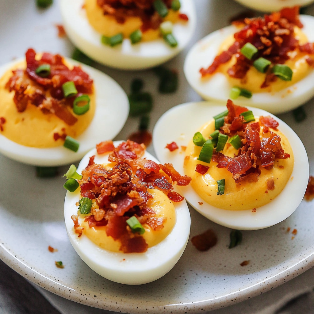 Spicy Sriracha Deviled Eggs with Bacon – A Party Hit!