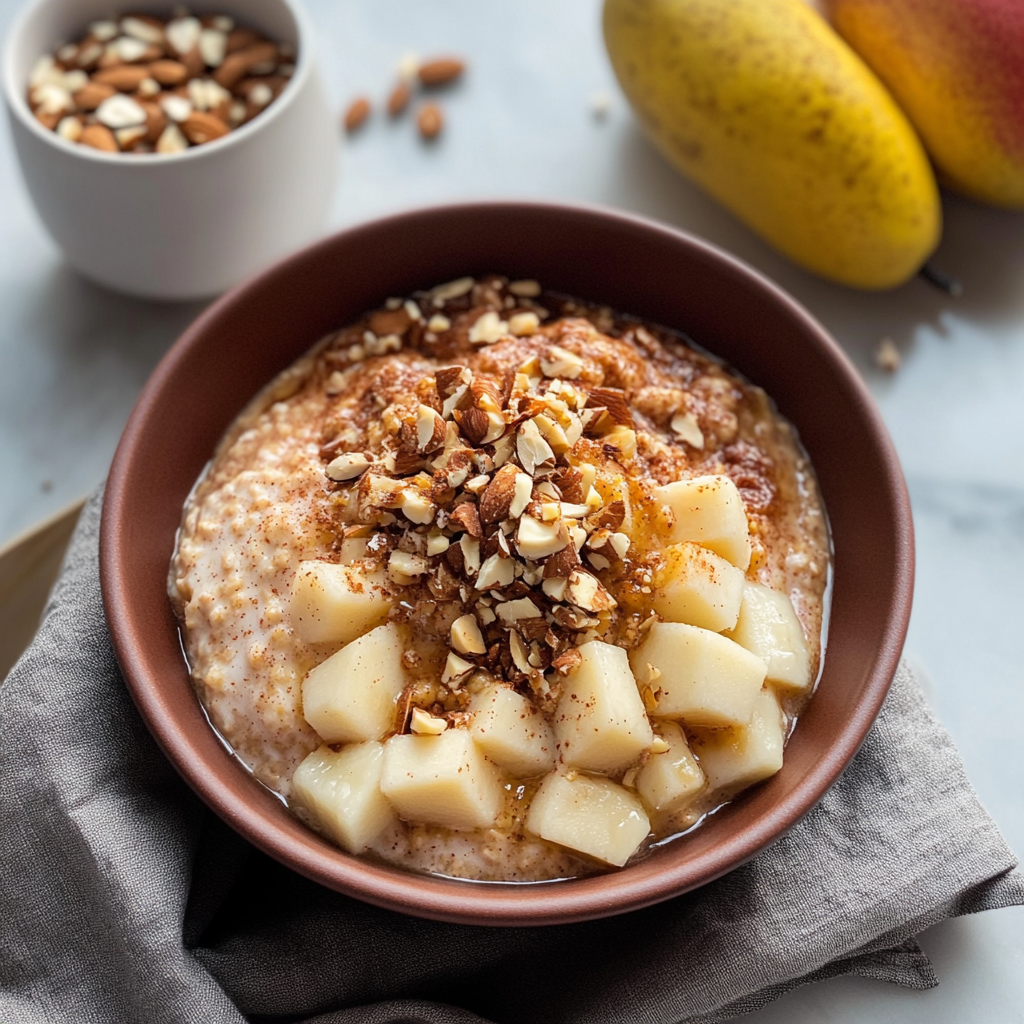Delicious Chai-Spiced Pear Oatmeal with Toasted Almonds
