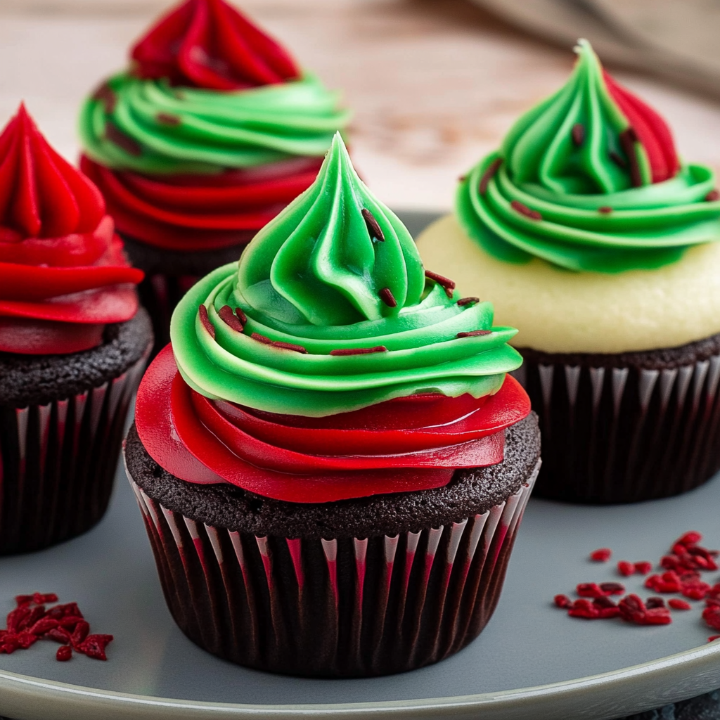 Festive Red and Green Swirl Cupcakes Recipe Delight