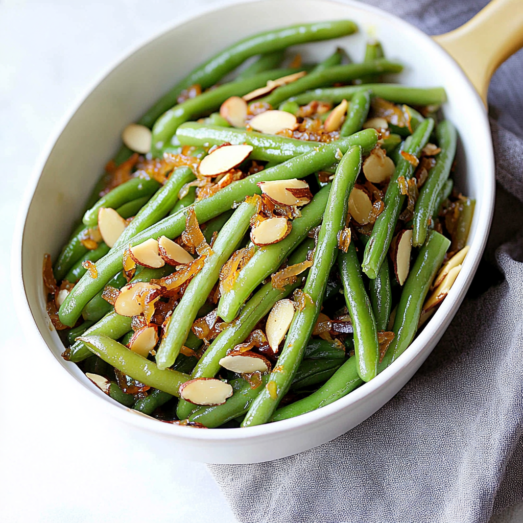 Savory Green Beans with Almonds & Caramelized Onions Recipe