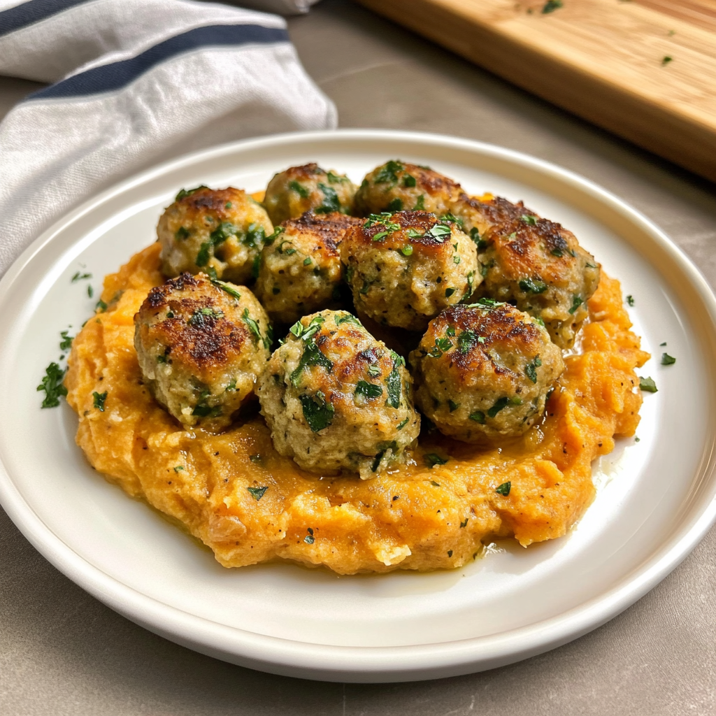 Irresistible Pork Meatballs with Sweet Potato Mash Recipe