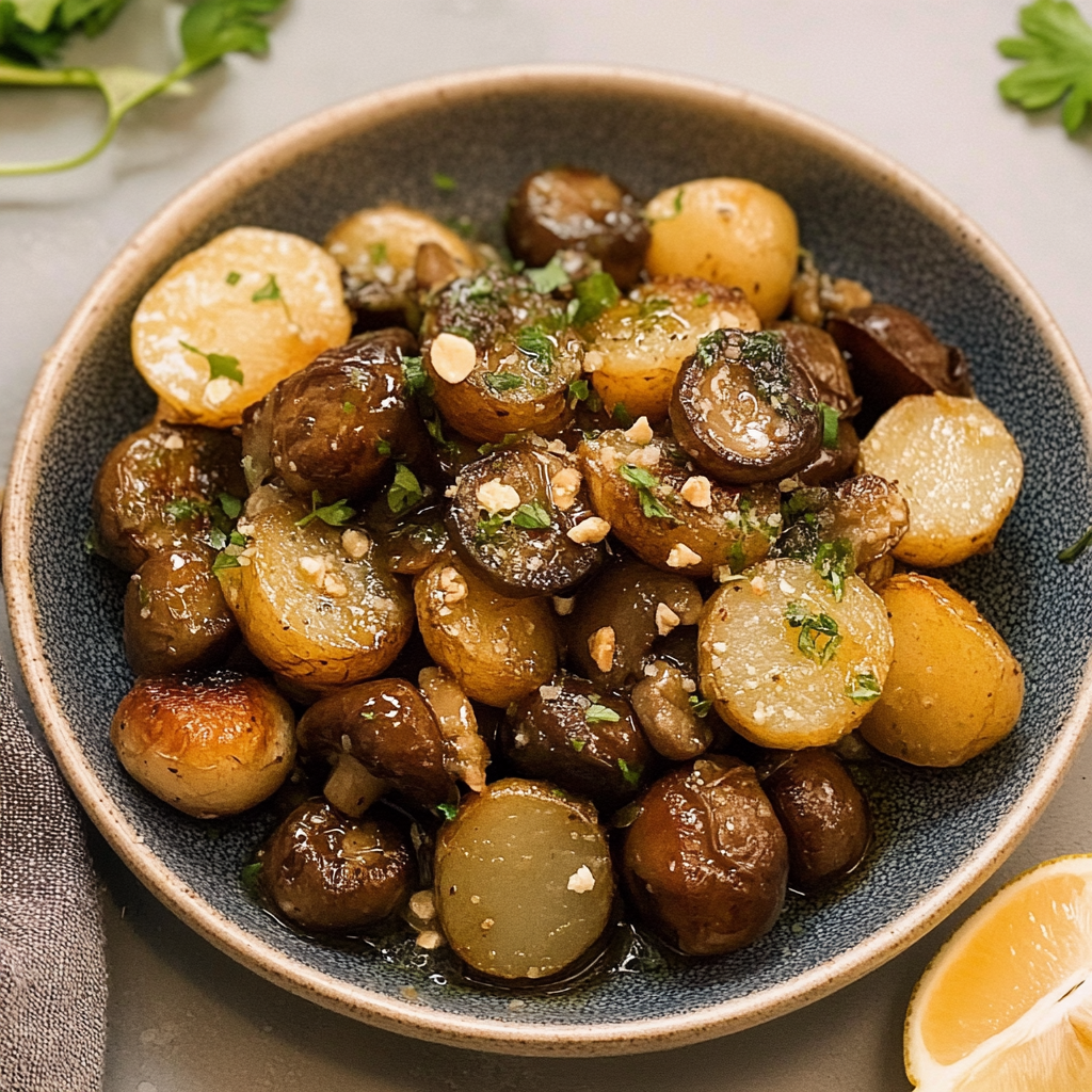 Savory Pan Roasted Garlic Mushroom and Baby Potatoes