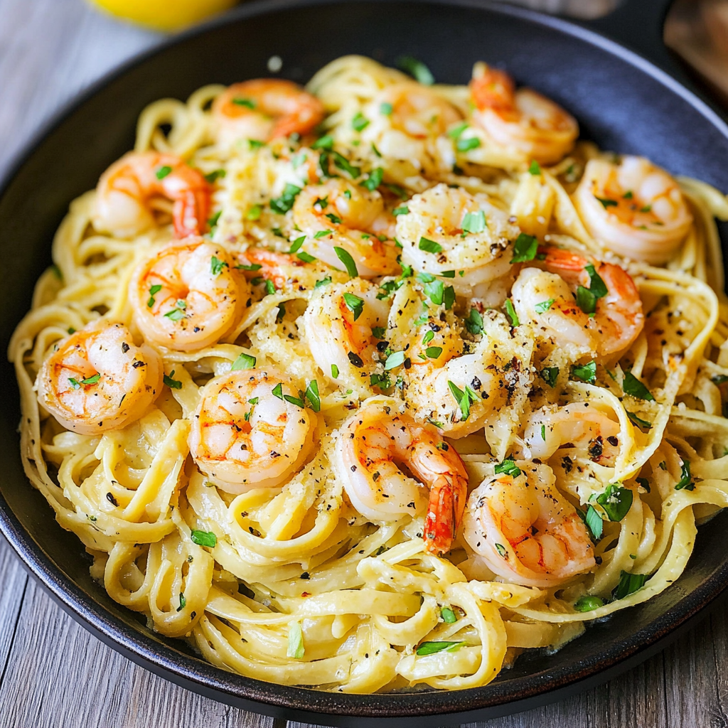 Bright and Zesty Lemon Fettuccine with Garlic Shrimp