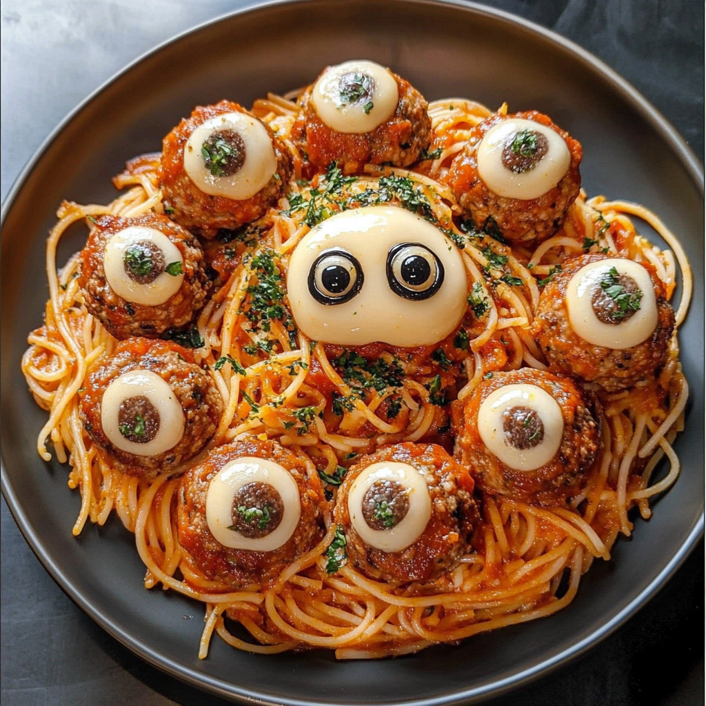 Spooky Spaghetti & Cheesy Monster Meatballs for Halloween