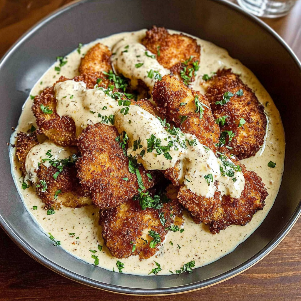 Crispy Parmesan Chicken with Creamy Garlic Sauce Recipe