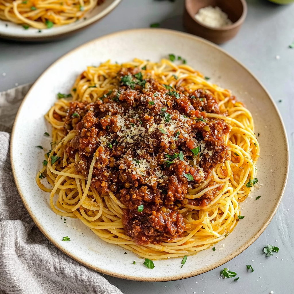 Savory Beef and Lentil Bolognese over Whole Wheat Pasta