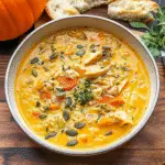 Turkey Pumpkin Curry Soup with Rice pairs wonderfully with a variety of sides. You might consider serving it with crusty bread or naan for dipping. A fresh green salad also complements the richness of the soup, adding a refreshing contrast. cheesy root vegetable gratin side For a complete meal, consider pairing it with roasted vegetables or a simple side of steamed greens.