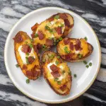 Start by baking your potatoes until they are tender. While they cool, cook the bacon until crispy. Then, scoop out some potato flesh for a perfect shell. Mix the scooped potato with cheese and seasonings before filling those skins and baking again for crispy perfection.