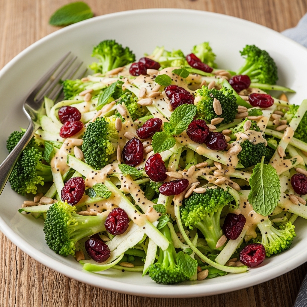 Shaved Broccoli & Cranberry Fiber-Blast Salad is packed with nutrients. Broccoli is rich in vitamins C and K, while cranberries provide antioxidants and fiber. This salad supports digestion, boosts immunity, and promotes heart health. The fiber content helps keep you full longer, making it a perfect choice for weight management. Including this salad in your diet can enhance overall wellness and add a refreshing crunch to your meals.
