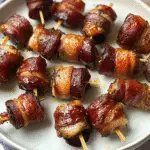 Bacon Wrapped Dates are a delicious appetizer made by wrapping pitted dates in strips of bacon and baking them until crispy. This simple yet indulgent dish combines the sweetness of dates with the savory flavor of bacon, creating a delightful contrast. salted caramel pecan blondies They are often served at parties, holiday gatherings, or as a special treat at home. The recipe is versatile, allowing for additions like cheese or nuts inside the dates, enhancing their flavor profile even further.