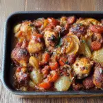Chicken and chorizo tray bake is a vibrant, one-pan meal that effortlessly blends juicy chicken thighs with zesty Spanish chorizo and colorful vegetables. This dish not only boasts a delightful smoky flavor but also offers a comforting aroma that fills your kitchen. Perfect for busy weeknights or cozy gatherings, this easy-to-prepare recipe will soon become a go-to favorite in your household.