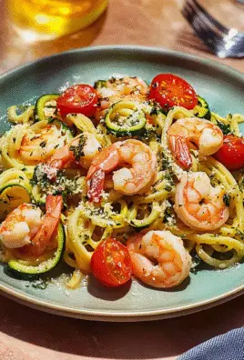 Irresistible Zucchini Noodle Shrimp Scampi with Roasted Tomatoes