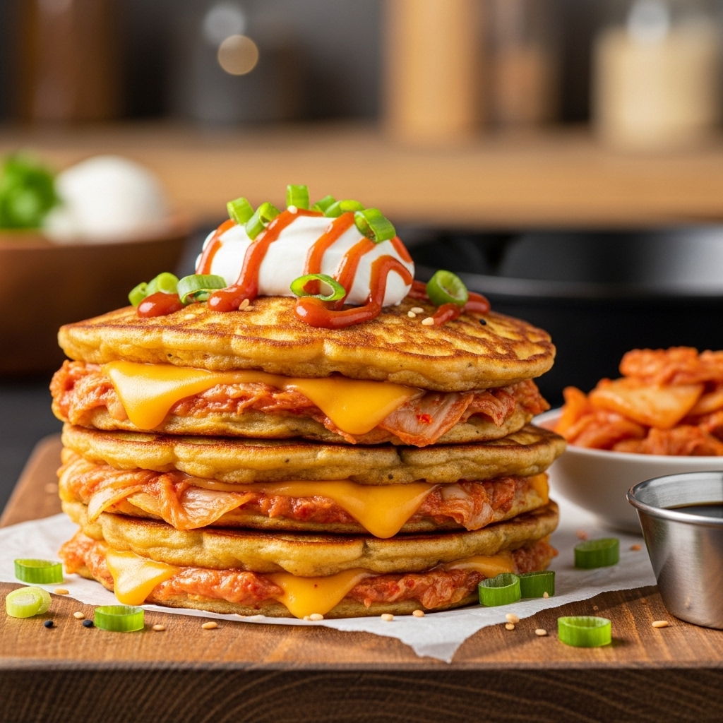Experience a delightful twist on traditional pancakes with these Kimchi and Cheddar Savory Pancakes! Each fluffy bite combines the spicy tang of kimchi with the rich creaminess of cheddar cheese, creating an extraordinary flavor explosion. Perfect for brunch, dinner, or a quick snack, these pancakes are easy to prepare and sure to impress your family and friends.