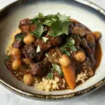 Indulge in the comforting flavors of Moroccan Spiced Lamb Stew and Chickpeas, a hearty dish that combines tender lamb with creamy chickpeas and aromatic spices. This easy-to-prepare stew is perfect for both cozy nights in and elegant dinner parties. With its rich, inviting aroma and vibrant colors, it’s sure to impress your guests or satisfy your cravings on a lazy afternoon.