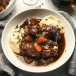 Red Wine Braised Short Ribs offer a luxurious yet comforting meal that’s perfect for any occasion. By selecting quality cuts of meat and allowing them to braise slowly in rich red wine, you achieve tenderness and depth of flavor. Preparing this dish in advance not only saves time but also enhances its taste as it sits overnight. Serve it alongside creamy mashed potatoes or roasted vegetables for a delightful dining experience everyone will love. Enjoy this hearty dish that brings warmth and satisfaction to your table! For more inspiration, check out this Perfect Slow Cooker Pot Roast recipe.