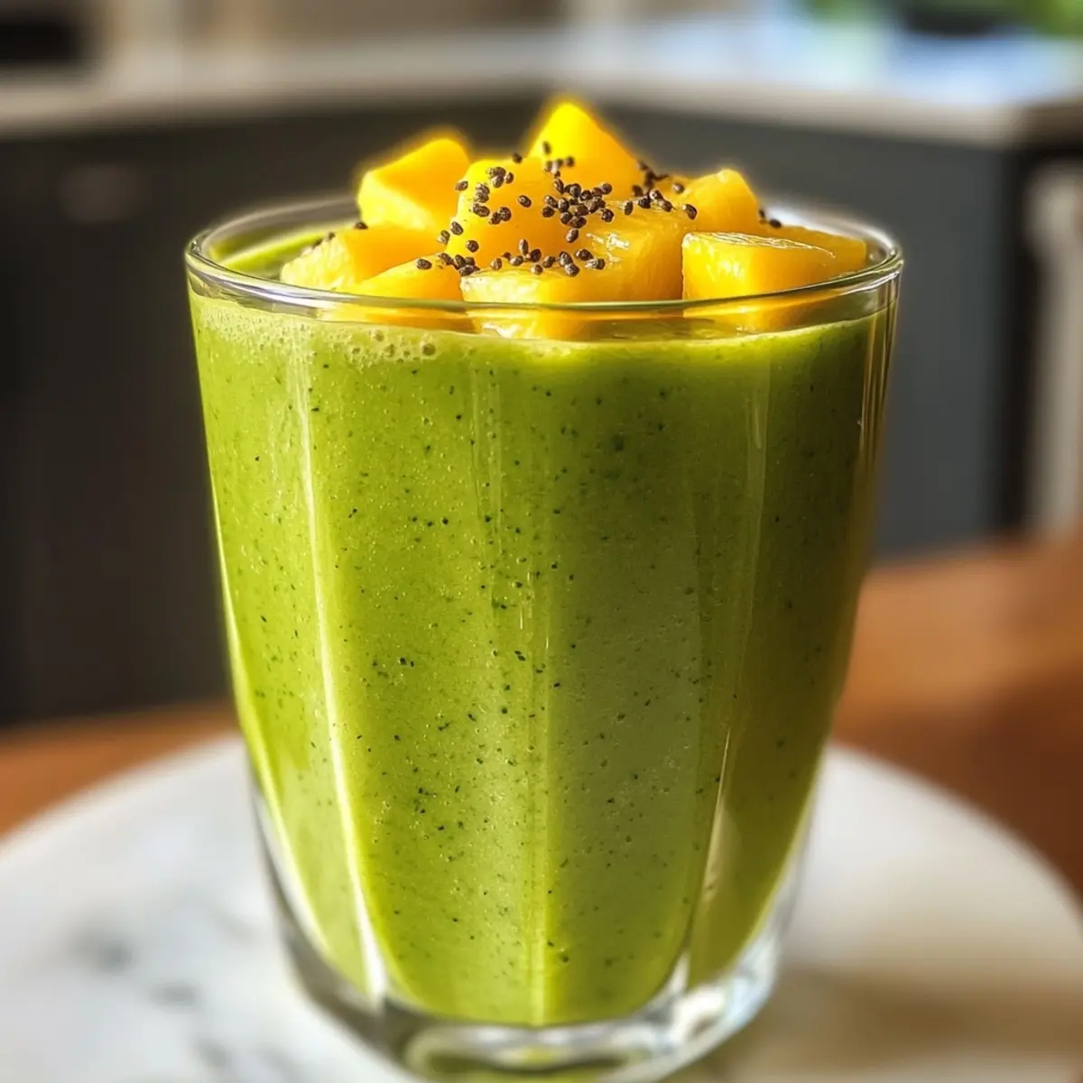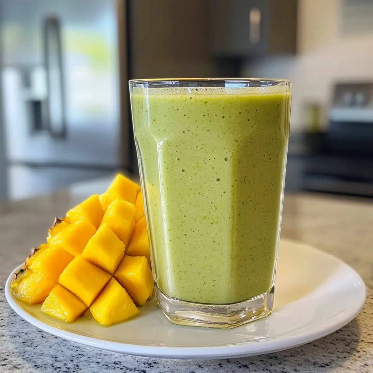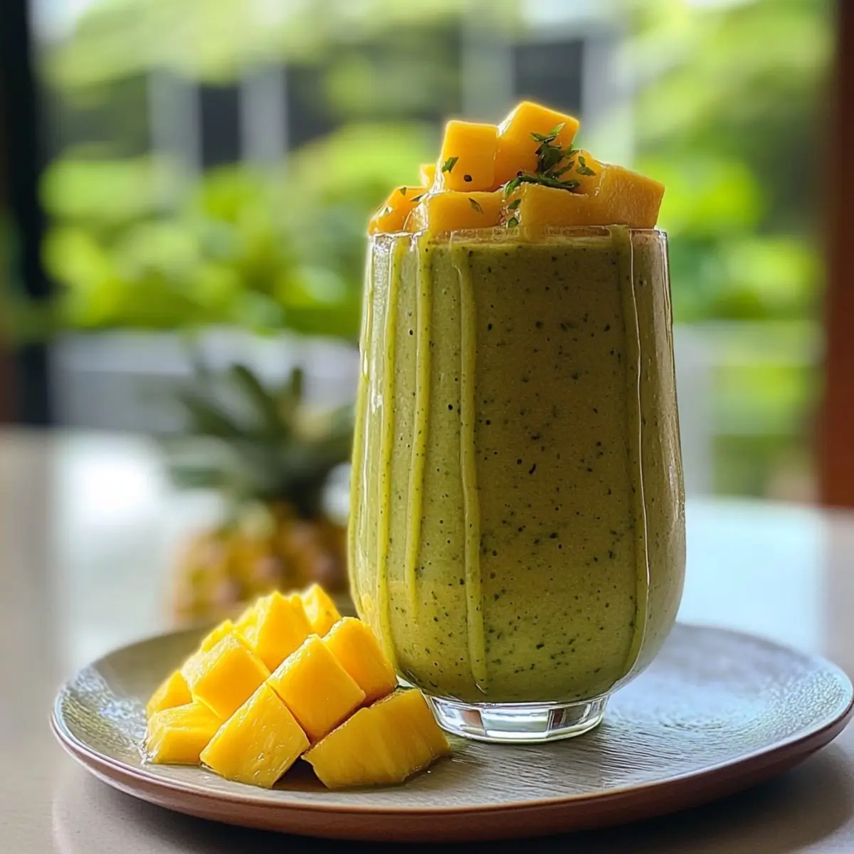 A vibrant Mango Pineapple Green Smoothie loaded with nutrients, combining tropical flavors for a refreshing breakfast.