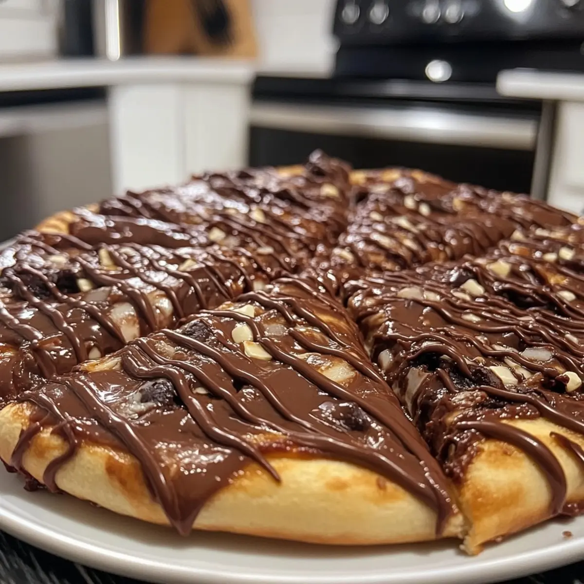 Nutella Pizza is a delightful dessert that combines a warm, soft crust with rich Nutella, perfect for any occasion.