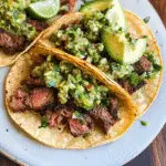 In conclusion, Grilled Steak Tacos with Avocado Salsa offer a delightful blend of flavors that are easy to prepare and incredibly satisfying. The juicy grilled steak pairs perfectly with the creamy avocado salsa, creating a balance that is hard to resist. Remember to choose fresh ingredients for the best taste and feel free to customize toppings based on personal preferences. Whether for a casual dinner or entertaining guests, these tacos are sure to impress everyone at the table!