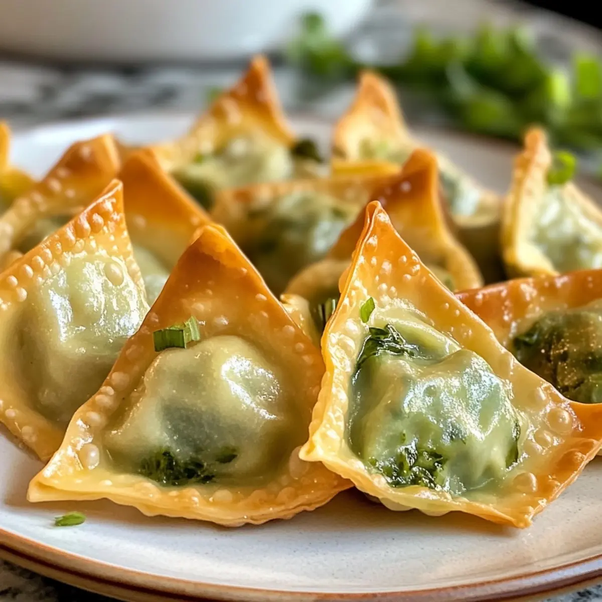 Delight your guests with Spinach Artichoke Wontons, a creamy and crispy appetizer perfect for any gathering.