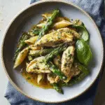Zesty Greek Chicken Pasta with Spicy Harissa Feta Cream & Roasted Asparagus Crisps is a vibrant dish that delivers a delightful fusion of Mediterranean flavors. Tender chicken, creamy harissa-infused feta sauce, and crunchy asparagus come together for a quick yet impressive meal perfect for weeknight dinners or summer gatherings.