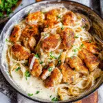 - Visually stunning with golden-brown chicken bites and creamy Alfredo sauce, they’re sure to impress at any dinner table.